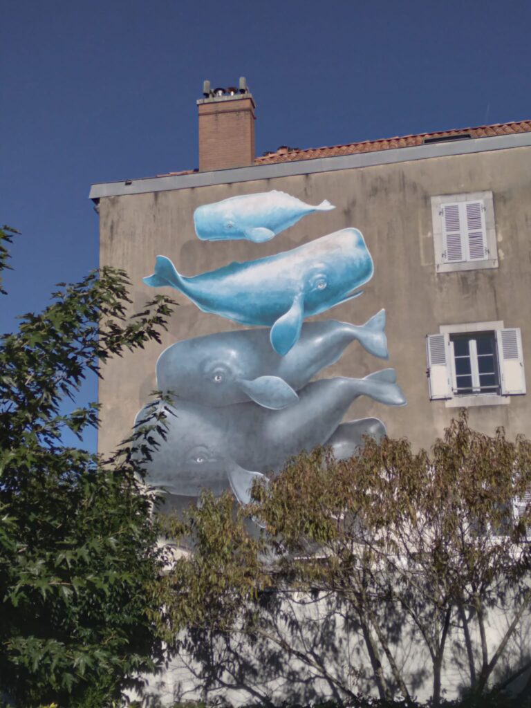 Mioshe, de son côté, a fait revivre Lapurdum, l’ancienne Bayonne romaine, avec une fresque monumentale au Square Bergeret, tandis que le duo MonkeyBird a restauré Le Passeur, œuvre créée en 2016, pour rappeler que préserver les fresques existantes fait partie intégrante du dialogue entre art et mémoire.